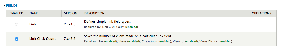 First we’ll need to install and enable Link Click Count and its dependencies.